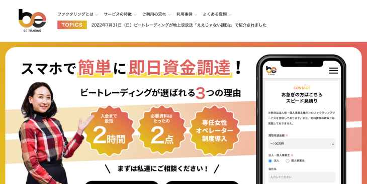 フリーランスや個人事業主の方は、業種によっては個人との取引が中心であることも多いので、その請求書を買い取ってもらえるのは明確なメリットといえるでしょう。